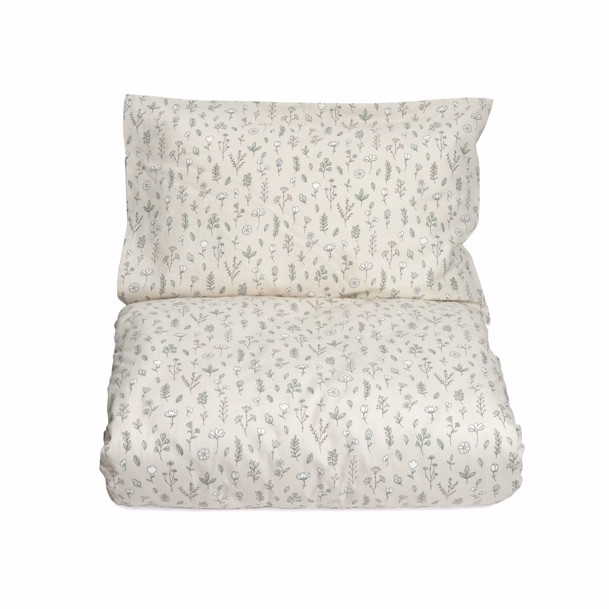 Dröm sött lilla bebis mitt i en blomsteräng. Mjukt påslakanset med ett vackert blommönster, så fint i babyns säng.