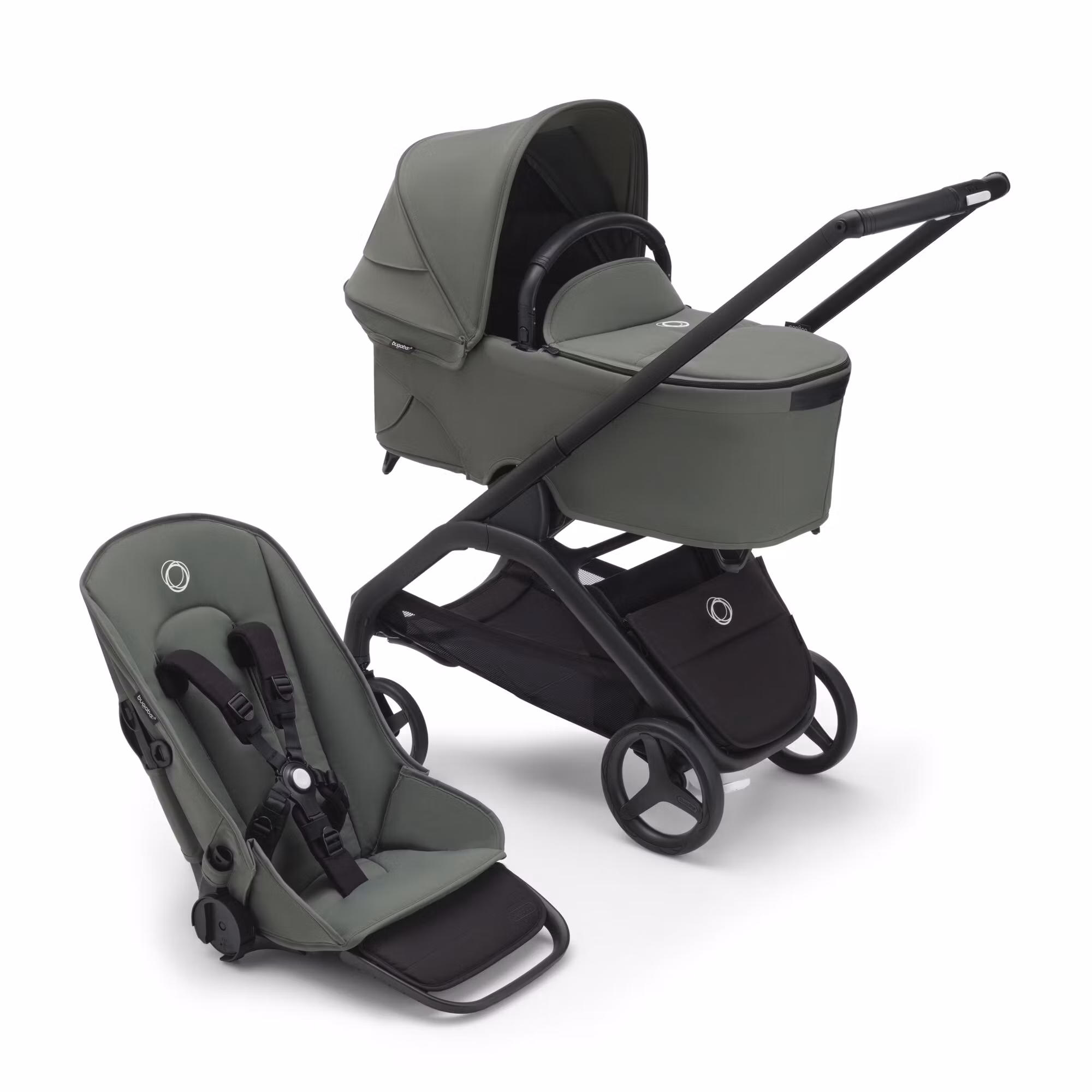 Helt nya Bugaboo Dragonfly Black Forest Green - Komplett barnvagn med Sittvagn och Liggdel.