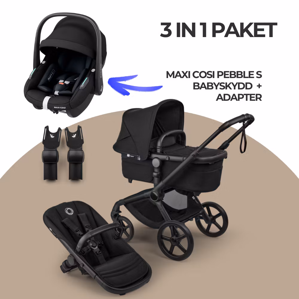 Uppgradera till Bugaboo Fox 5 Renew och få Maxi‑Cosi Pebble S babyskydd inkluderat i köpet. Adaptern ingår i paketet för att du enkelt ska kunna klicka babyskyddet direkt på vagnen.