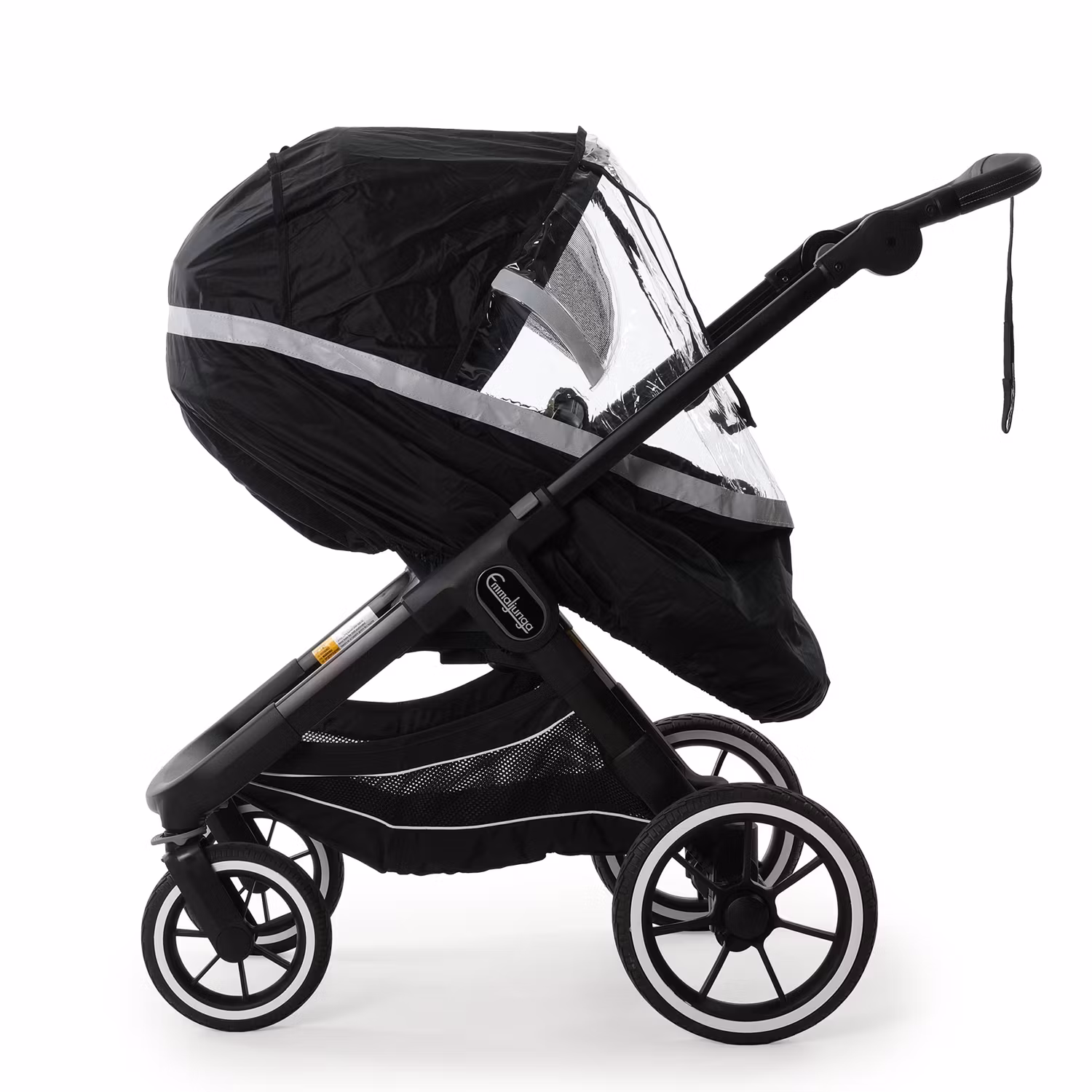 Skydda ditt barn mot regn och blåst med ett regnskydd i vattenavvisande material, stora reflexer och smart ventilation. Syns i mörkret