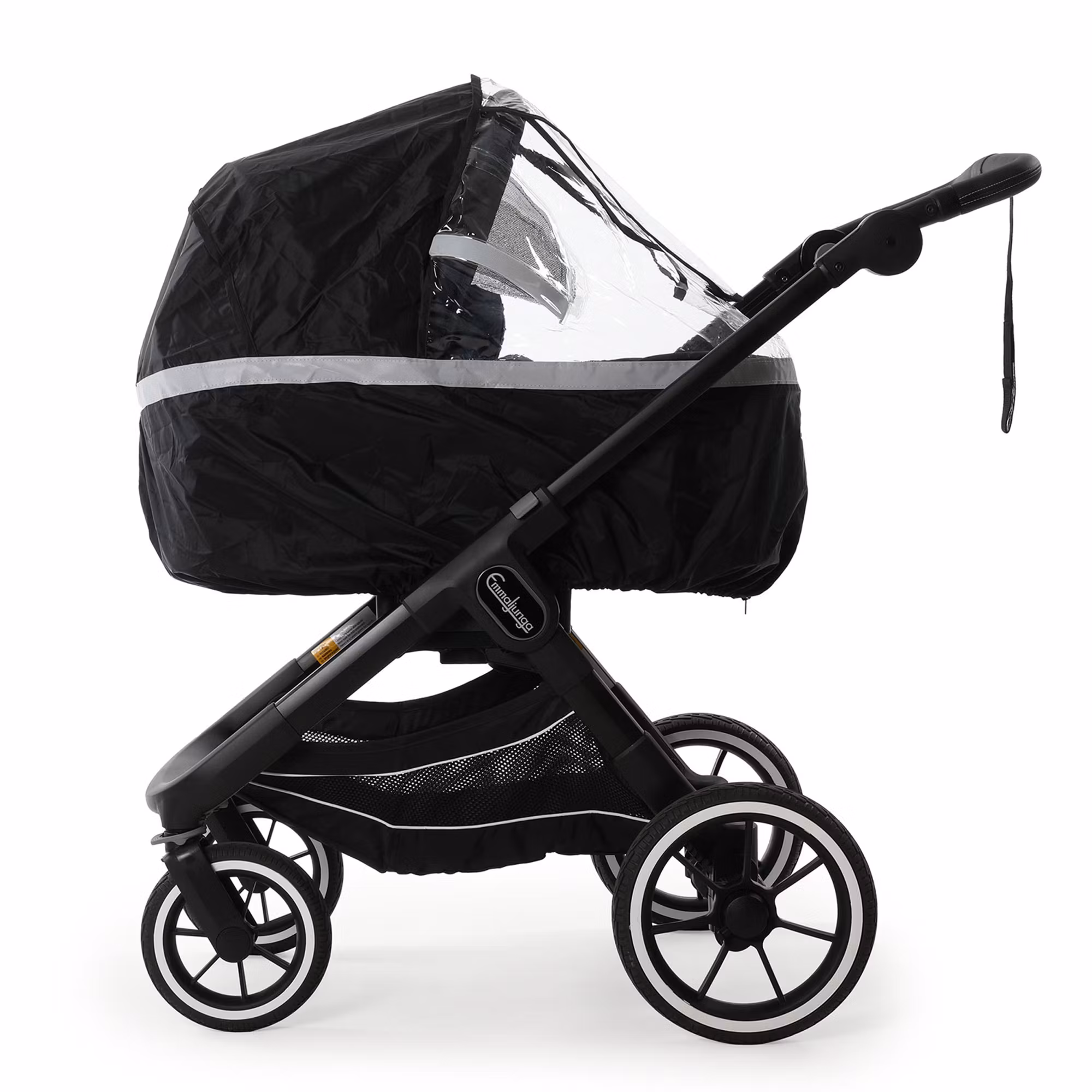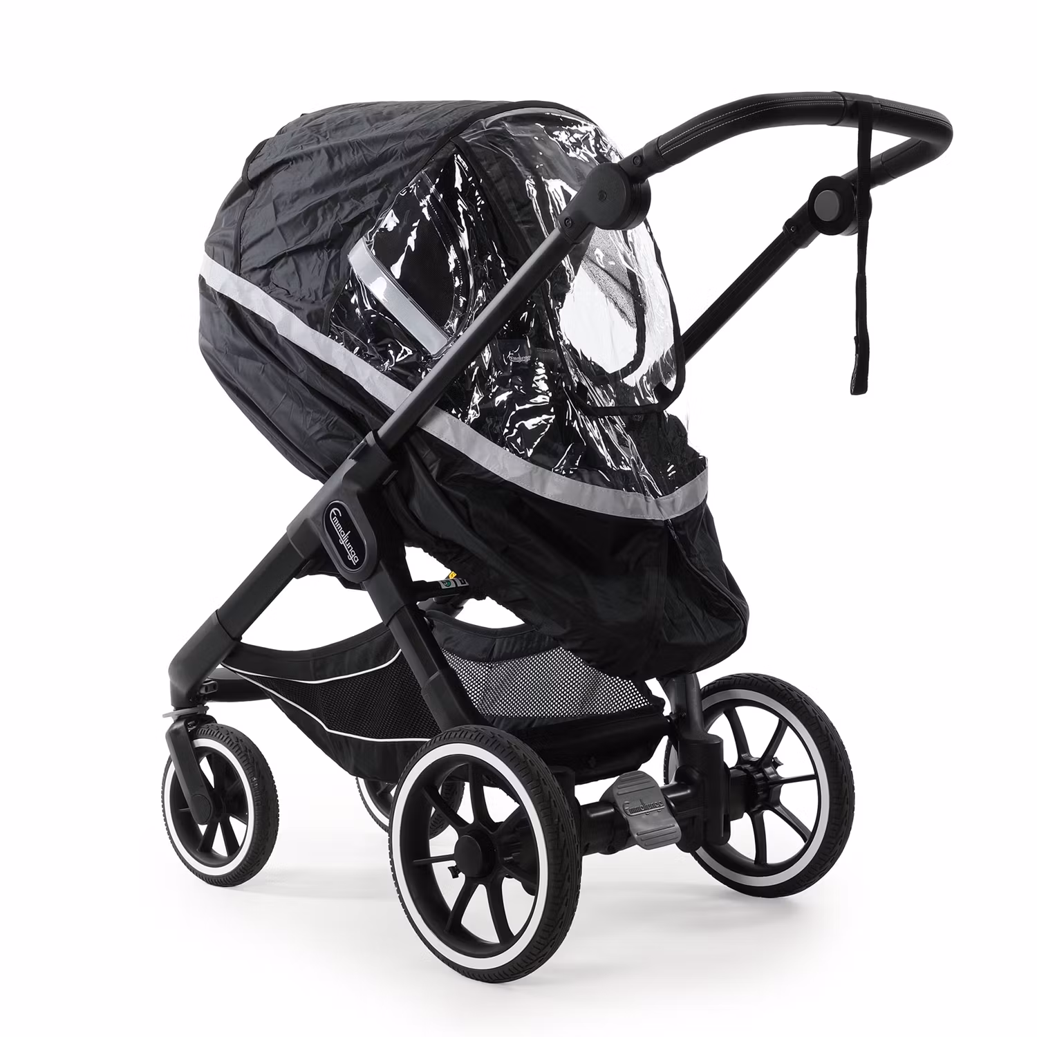Regnskyddet är skräddarsytt för Emmaljunga Flat+ sittdel, men passar även liggdelen. Det vattenavvisande tyget skyddar mot regn och rusk, medan stora reflexytor gör dig synlig i mörker. Ventilationsöppningar ger god luftcirkulation utan att släppa in regnet. Den smarta framluckan gör det enkelt att nå barnet – utan att ta av hela skyddet.