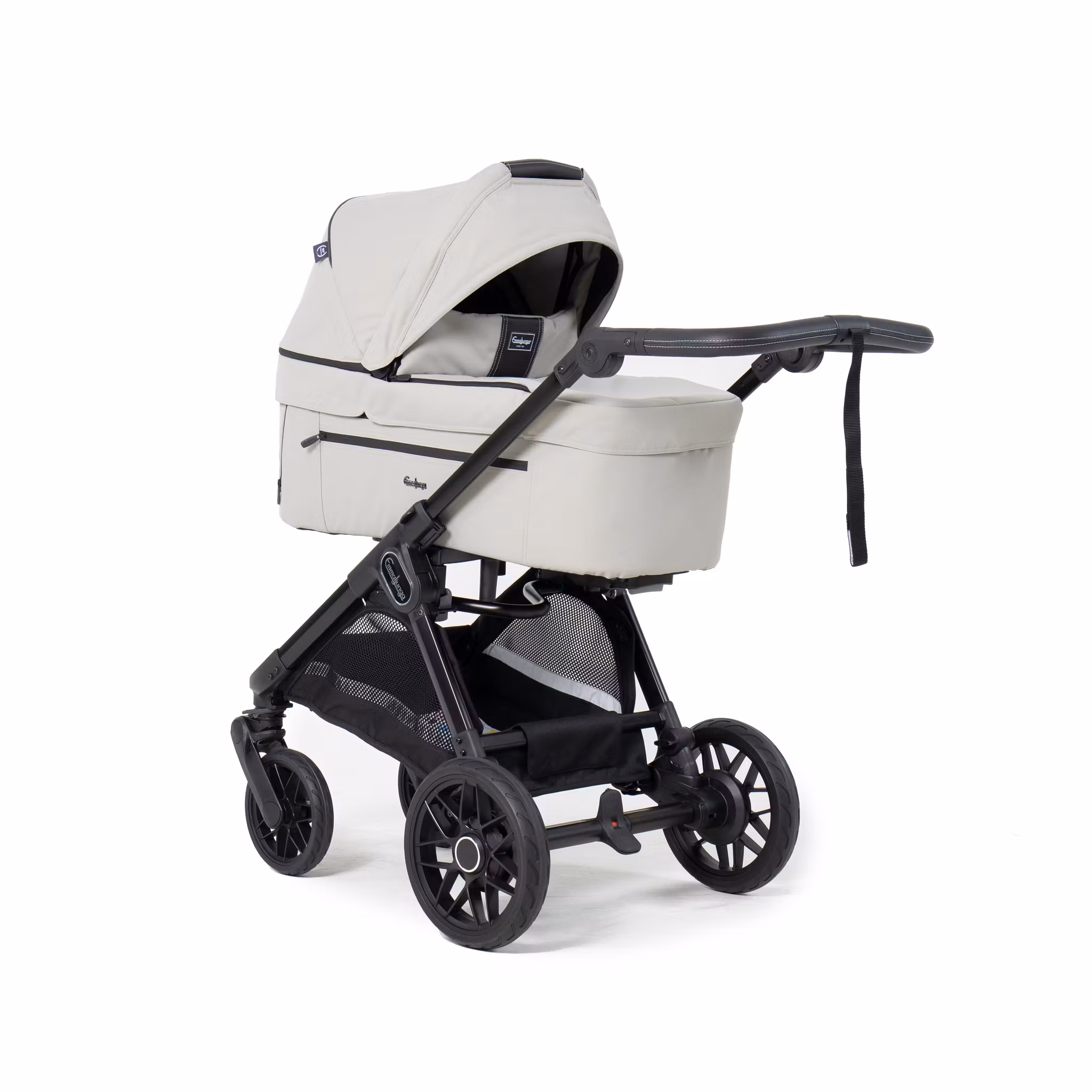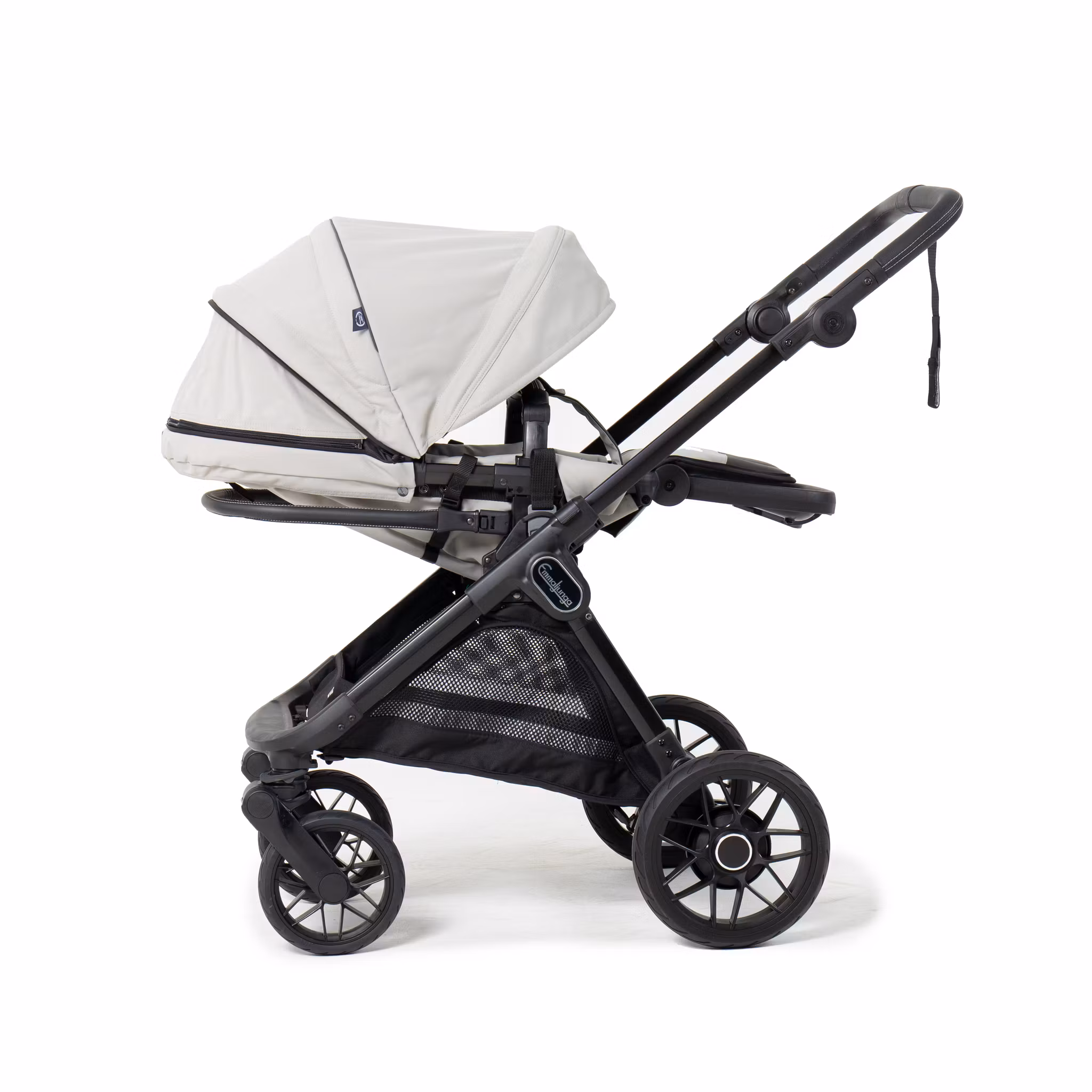 Färg denna barnvagn: Urban Pearl med svarta handtag och svart bygel