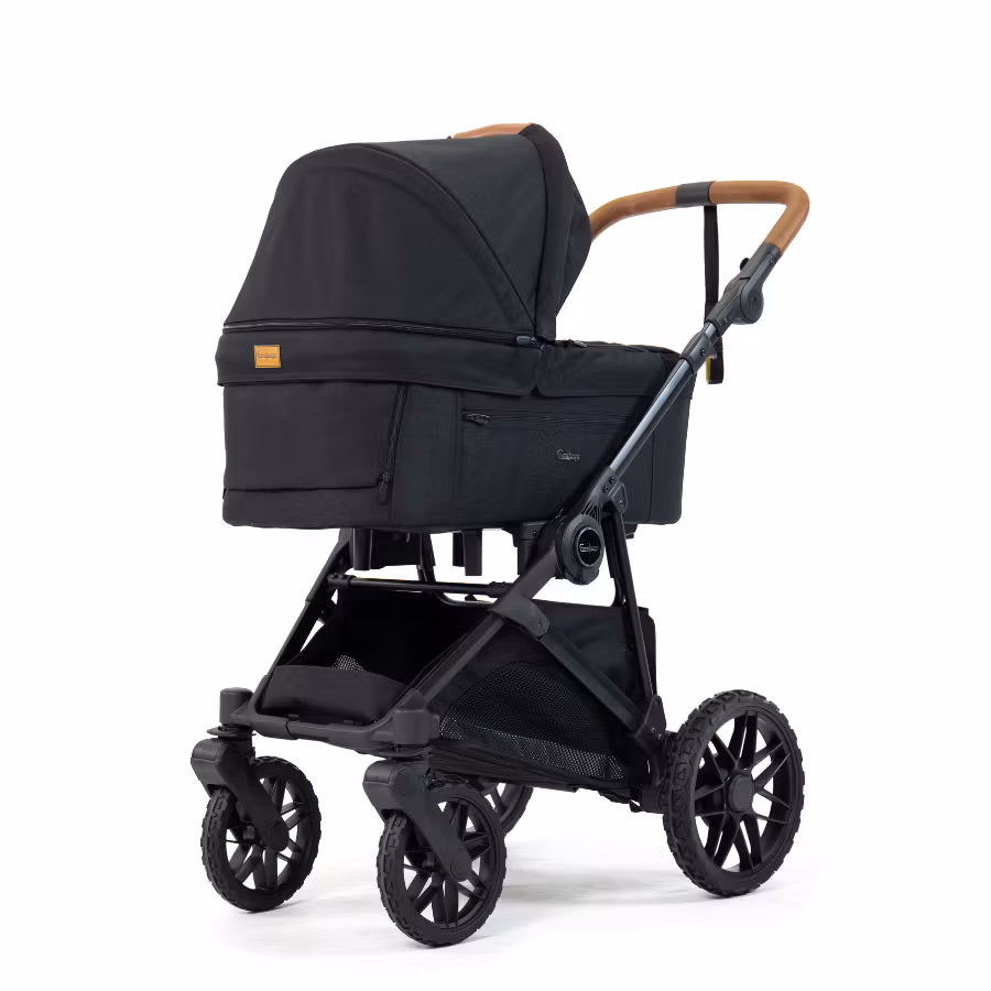 Liggdelens design ger nyfödda (0–6 månader, max 9 kg) en trygg och ombonad plats. ThermoBase-botten reglerar temperatur året runt, och ventilation i både sufflett och liggdel skapar ett friskt luftflöde. Den integrerade bärhandtaget gör transporten enkel, och den mjuka madrassen tillsammans med sidofickan ger både komfort och funktion.