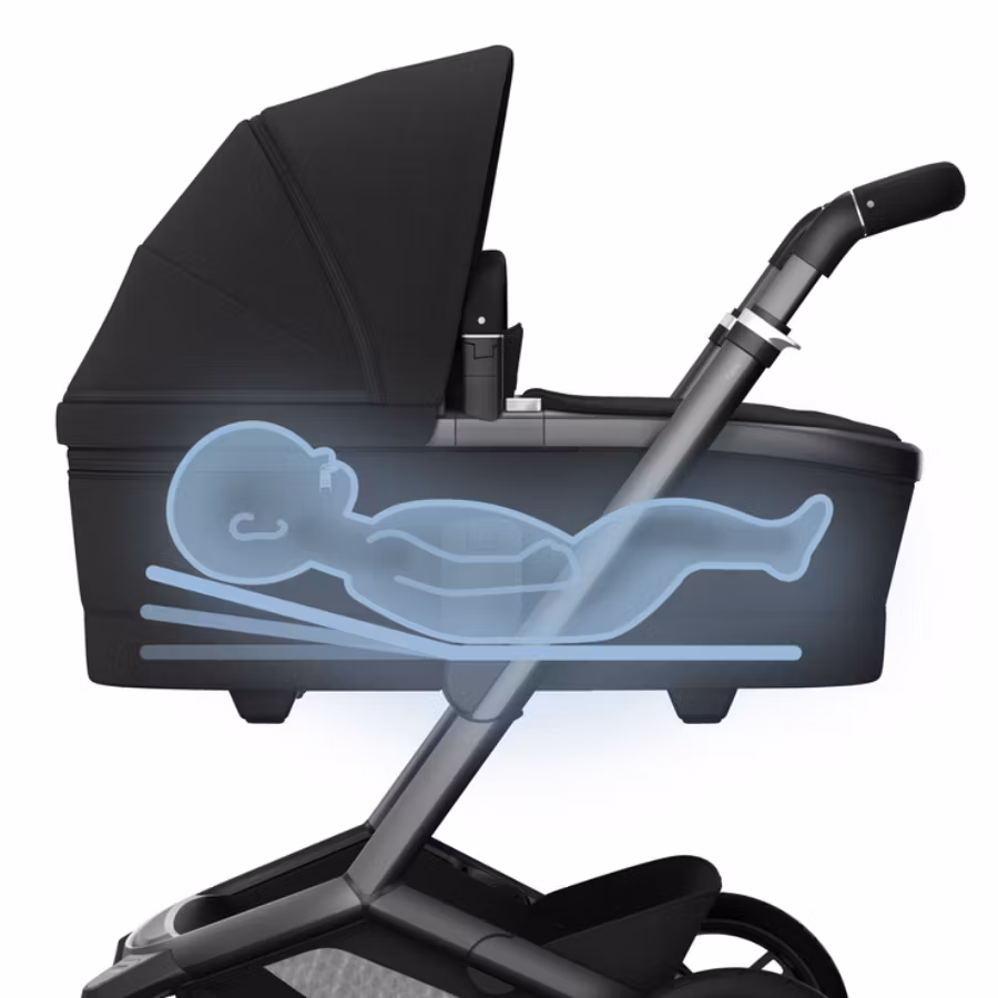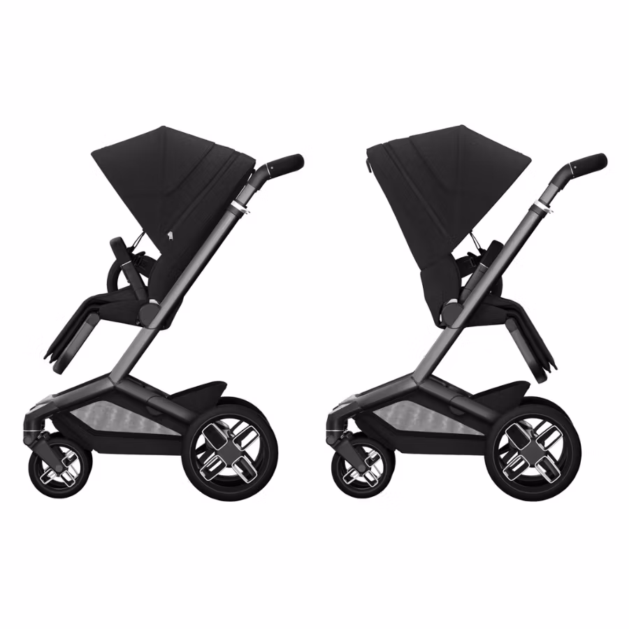 När barnet byter till sittdel får det fortsatt hög komfort med ett ultravadderat HD‑minnesskuminlägg. Sittdelen har tre lutningslägen till plant läge i båda riktningar, ClimaFlow‑mesh för bättre ventilation och ett magnetiskt fempunktslås som gör det enkelt att spänna fast barnet.