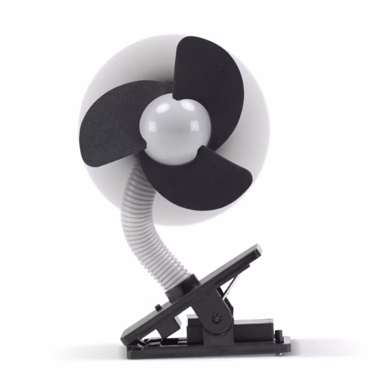 Praktisk fläkt som passar till en mängd olika ändamål såsom barnvagnen, barnsängen, babysitter eller babygymmet. Fläktens blad är av mjukt material, vilket gör att det inte finns någon som helst fara om små fingrar skulle leta sig dit. Flexibel hals som går att vinkla hur du vill för att fläkta precis där du vill!