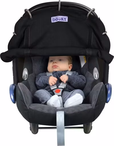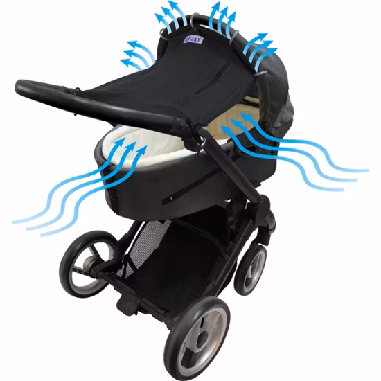 Solskydd för vagn och bilstol. Fästs enkelt med smarta plast ringar och snören. Passar alla barnvagnar och babyskydd som inte har för kraftiga handtag. Kardborre finns för att kunna snurra upp gardinen och fästa den i den höjd som behövs vid olika tillfällen.