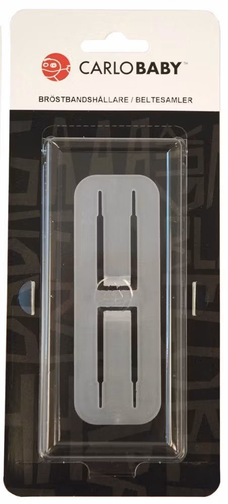 Bilbältes hållare Används på bilstolens sele för att förhindra att barnet tar sig ut.