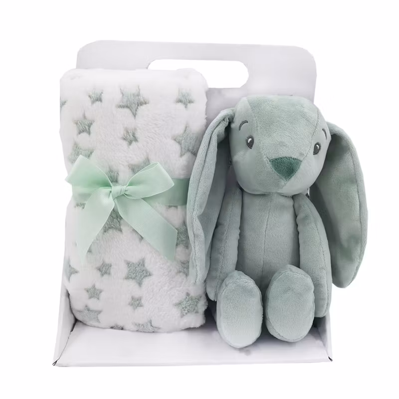 Carlobaby Fleecefilt med gosig grön kanin i fin förpackning