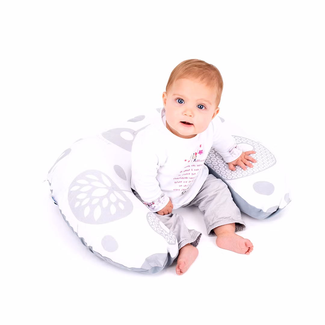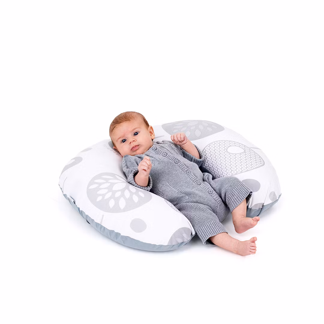 Doomoos amningskudde har flera smarta funktioner. Den kan användas som ett skönt liggstöd till barnet, både när det ligger på mage och på rygg samt som ett säkert sittstöd, som en ”lära sitta-kudde”.