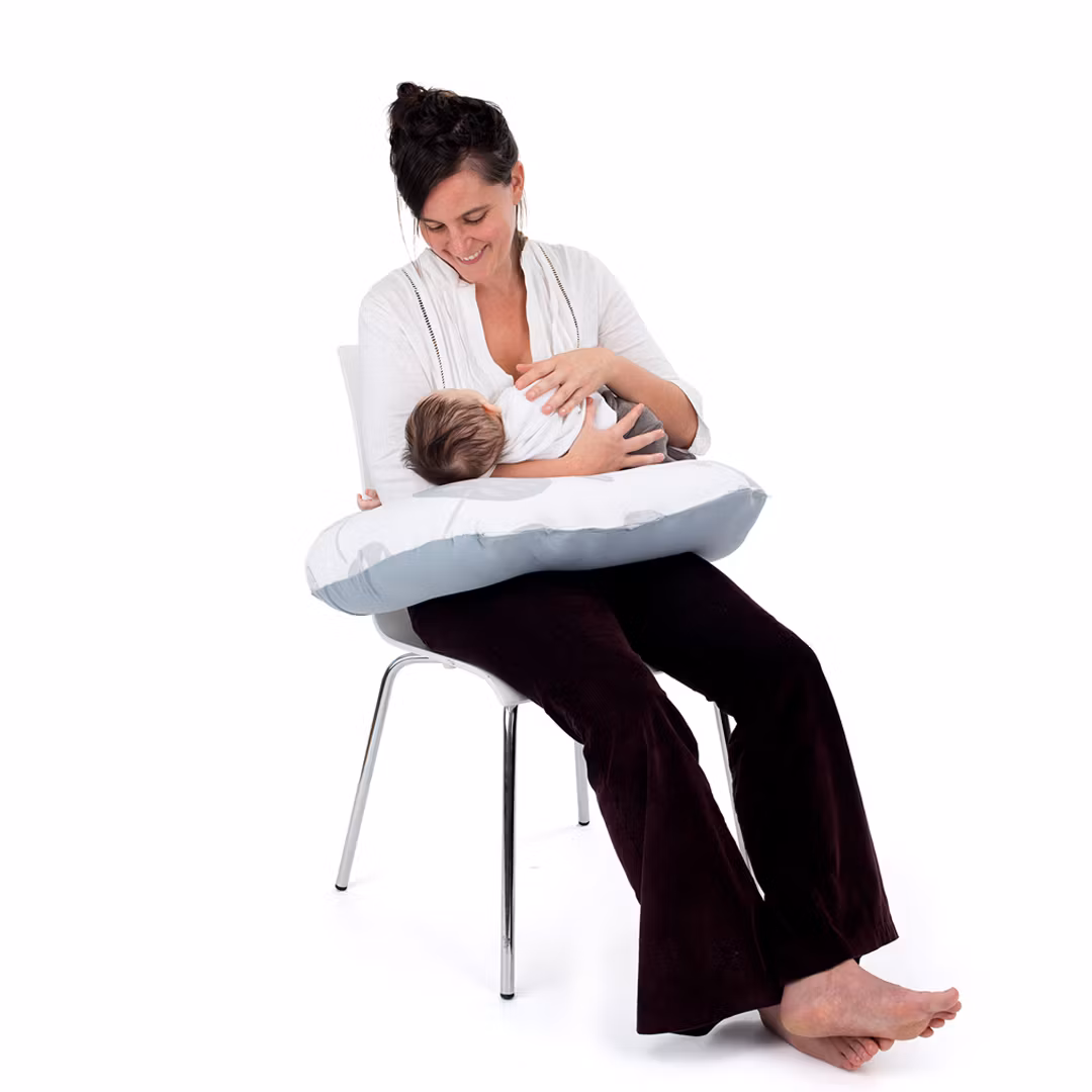 Med Doomoos amningskudde får mamman korrekt stöd för axlar, rygg och armar samtidigt som barnet får rätt amningsposition.