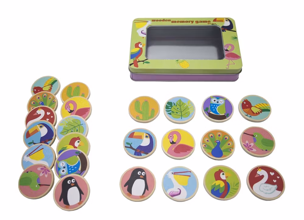Klassiskt memory spel med runda bitar som är enkla att greppa för barnet. Djurmotiv i klara, fina färger. Rekommenderas från 2+