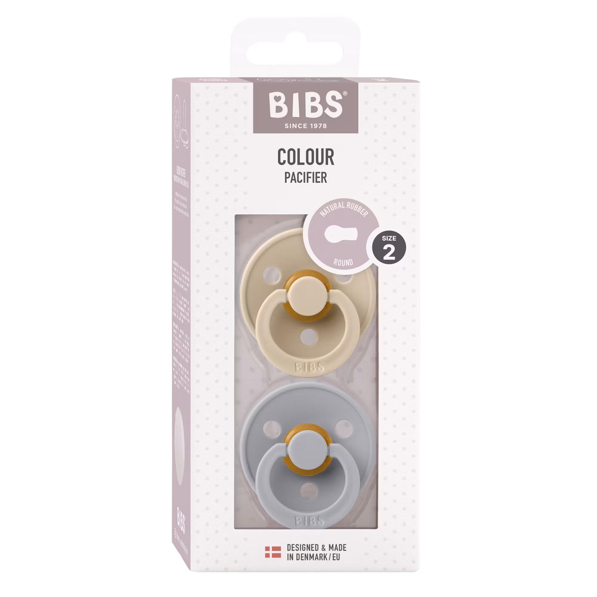 BIBS Colour är en serie med kvalitets nappar av 100% naturgummi, och finns tillgänglig i massor av vackra färger.