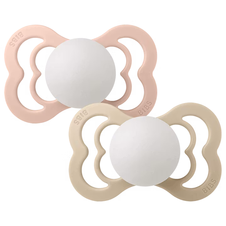 BIBS Supreme är en symmetrisk och platt napp i elegant och exklusiv design. Nappen har en sköld som är specialdesignad för att säkerställa att det finns gott om luft runt munnen så att barnets känsliga hud skonas så mycket som möjligt.