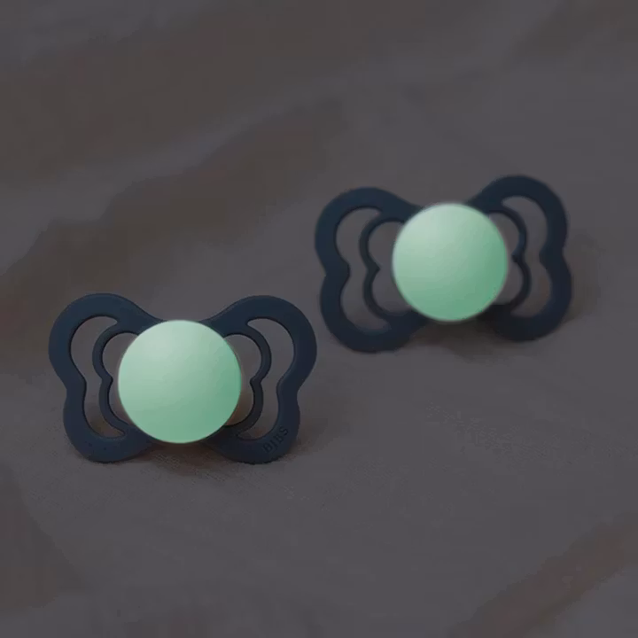 Glow/Night gör att nappen lyser upp i mörkret och blir lättare att hitta under de mörka timmarna.