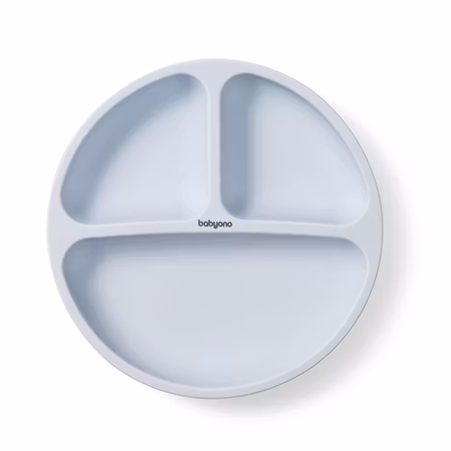 Tallriken med sugpropp, är perfekt om en bebis ska lära sig att äta på egen hand. Tack vare suget är risken för spill eller fall begränsad. Produktens ergonomiska form gör det lätt för barnet att ta mat. Tre praktiska fack uppmuntrar barnet att prova olika matprodukter. Tillverkad av ett högkvalitativt silikon, är plattan säker för hälsan och lätt att rengöra. Den kan diskas i diskmaskin och förvärmas i mikrovågsugnen.