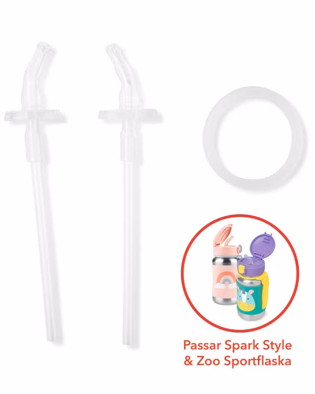 Extra sugrör till Skip Hop Zoo Sportflaska och Spark Style Sportflaska i stål. En förpackning innehåller två sugrör och en tätningsring till locket.• Innehåller